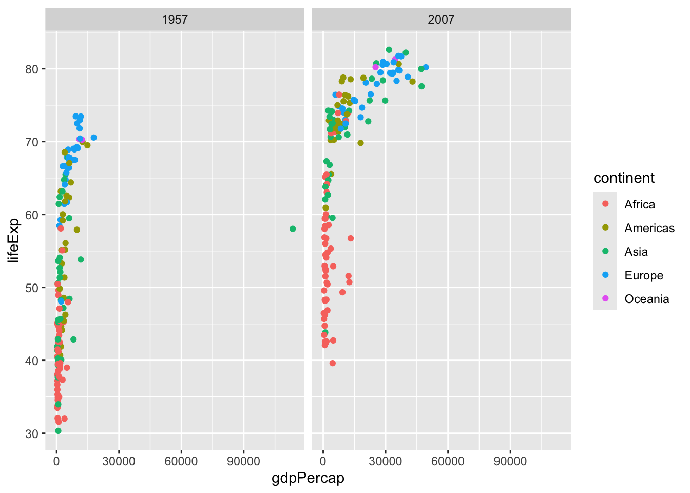 input <- filter(gapminder, year== 2007 | year == 1977)gapminder_1957 <- gapminder %>% filter(year==1957 | year==2007)