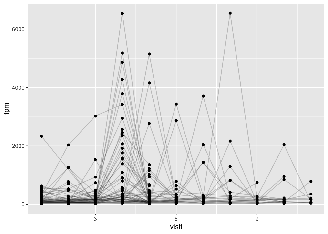 aes(visit, tpm, group = subject_id) +